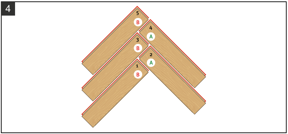 13.1. Укладывайте плашки «A» и «B» попеременно во всем помещении.